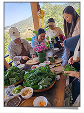 The enterprise operates in accordance with organic farming development guidelines, developing homestays certified under the ASEAN Homestay Standard. This initiative promotes participatory tourism, generating income for local communities through sharing their way of life, culture, and agricultural knowledge. Local tourism practices adhere to the concept of "Low Carbon Travel and Zero Waste," emphasizing the reduction of greenhouse gas emissions and waste to zero. Examples include traveling using community buses, eating organic produce, using clean energy at the accommodation, and processing food waste into compost. Pong Yang Farm is a center for organic agricultural activities and learning centers. There are two types of tour programs: a half-day program for 750 baht per person and a 2-day, 1-night program for 1,800 baht per person. Tourists will participate in workshops and knowledge sharing activities, such as visiting an organic vegetable plot, visiting a Sufficiency Economy Learning Center, cooking organic produce, making macadamia necklaces, weaving, and making natural beeswax candles. Each year, approximately 2,000 tourists participate in activities, learning about organic farming, visiting a cafe, or staying at a homestay during concerts. The combined revenue from the production and sale of organic agricultural products, agricultural tourism, and employment in the community generates at least 6.1 million baht in economic value annually.